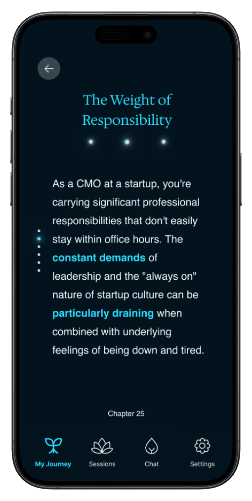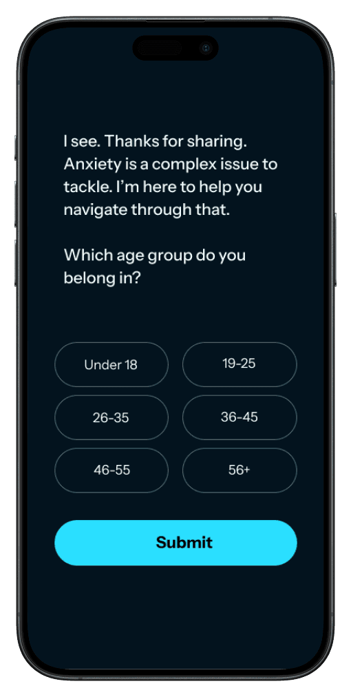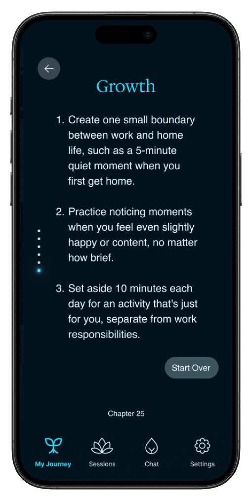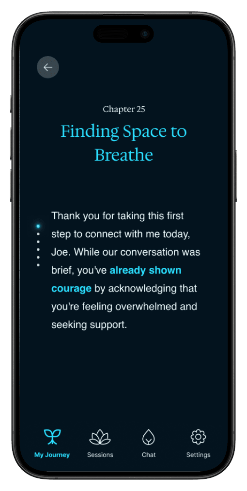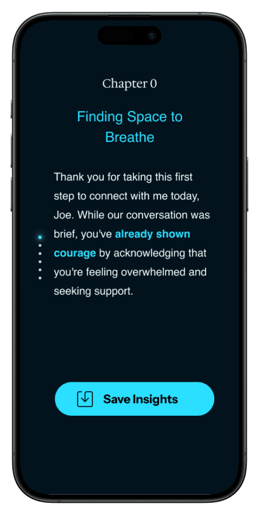 After gathering key information, we transition directly into the first therapy session to decrease friction. The user would get insights & next steps after the session. This would be the first chapter in their journey with Rae.
