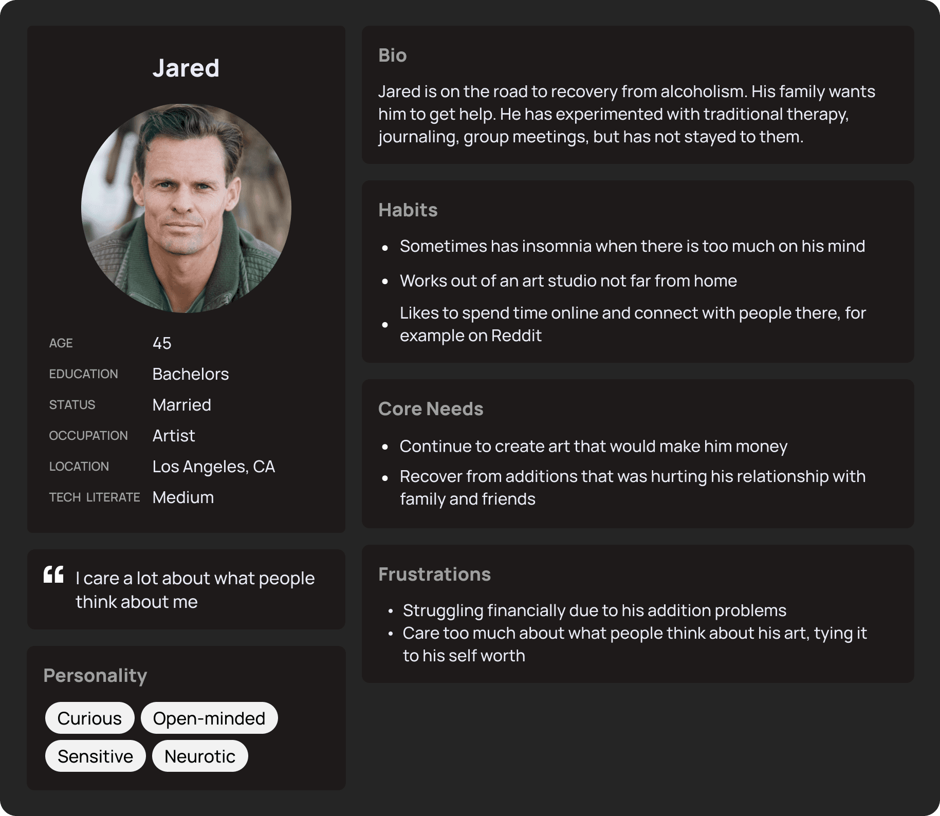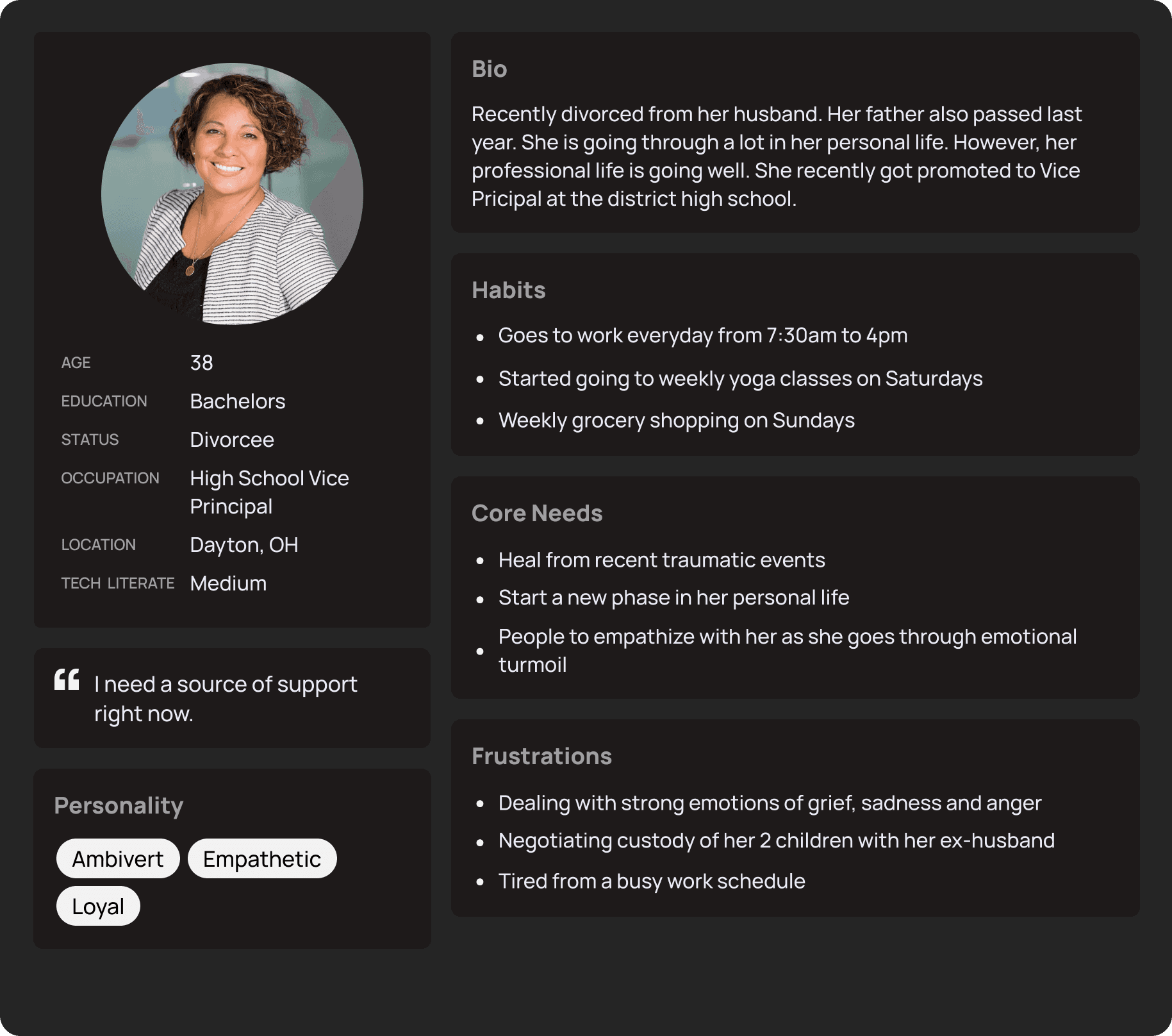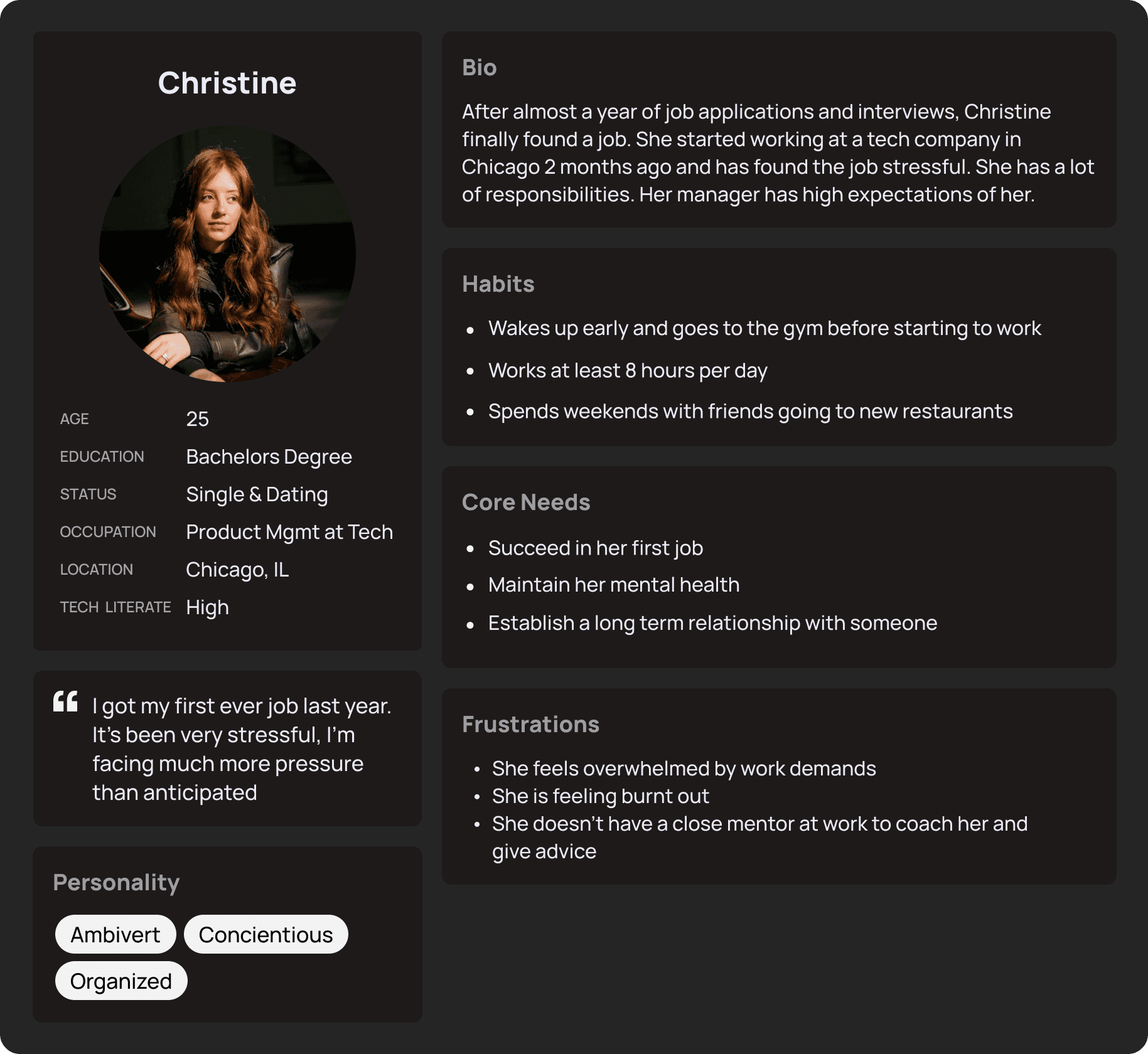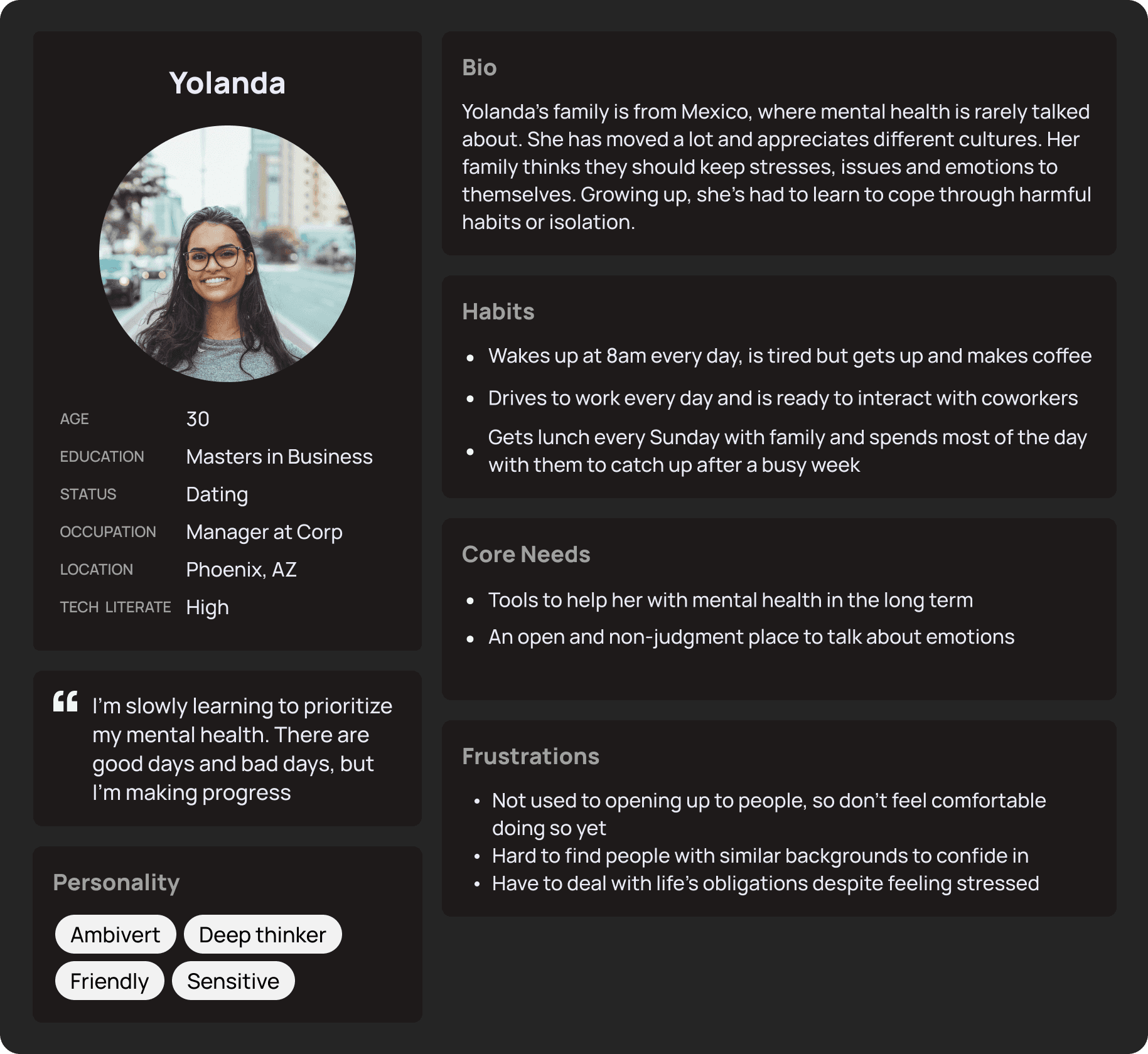 Rae has a diverse user base. I made 5 personas to empathize with why people use Rae, how they engage with it, features to expand upon, and areas for improvement.
