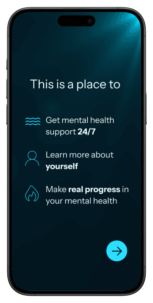 The primary color is a soft blue, representing calmness. The secondary color is a green, and it’s mostly used to congratulate users when they complete something. Gradients are used to portray softness in the approach to mental health