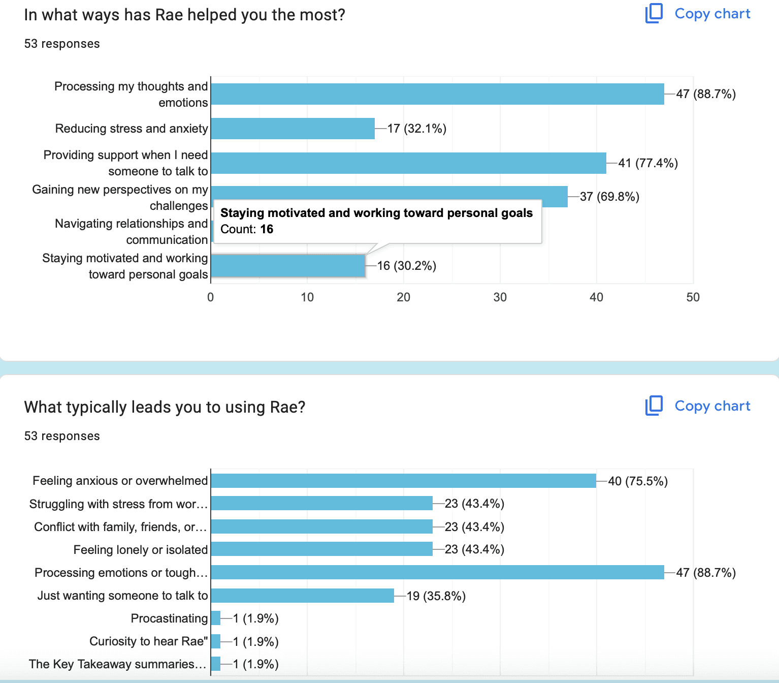 Many people who want mental health care don't get therapy due to high costs, lack of access, lack of time, cultural stigma and other factors. Rae aims to fill the gap by leveraging AI and incorporating proven therapy research.