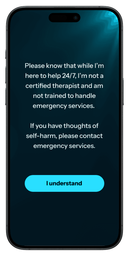 A big advantage of AI therapy is that it's available 24/7. We wanted to make this feature different from formal sessions. I made the UI more casual with the ability to customize colors.
