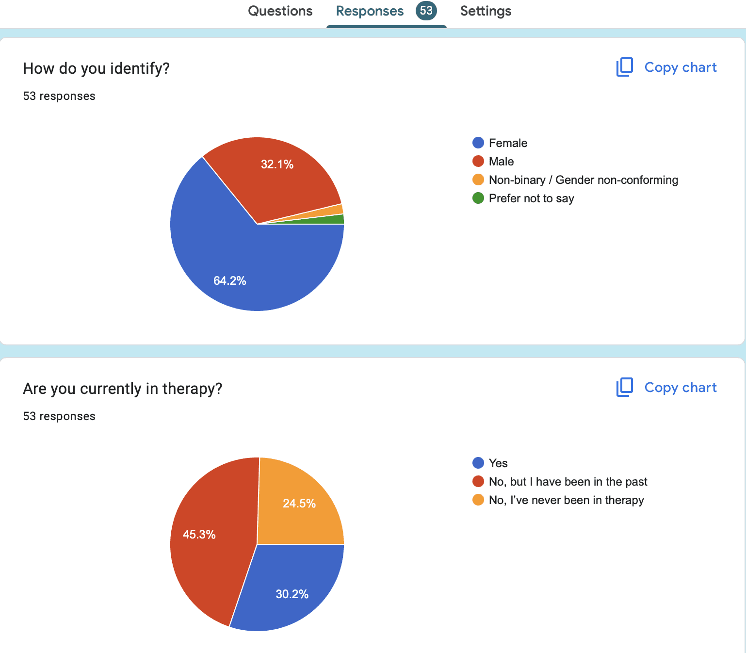 Demographically, the majority of therapists (~75%) are female. Women are almost twice as likely as men to get therapy.