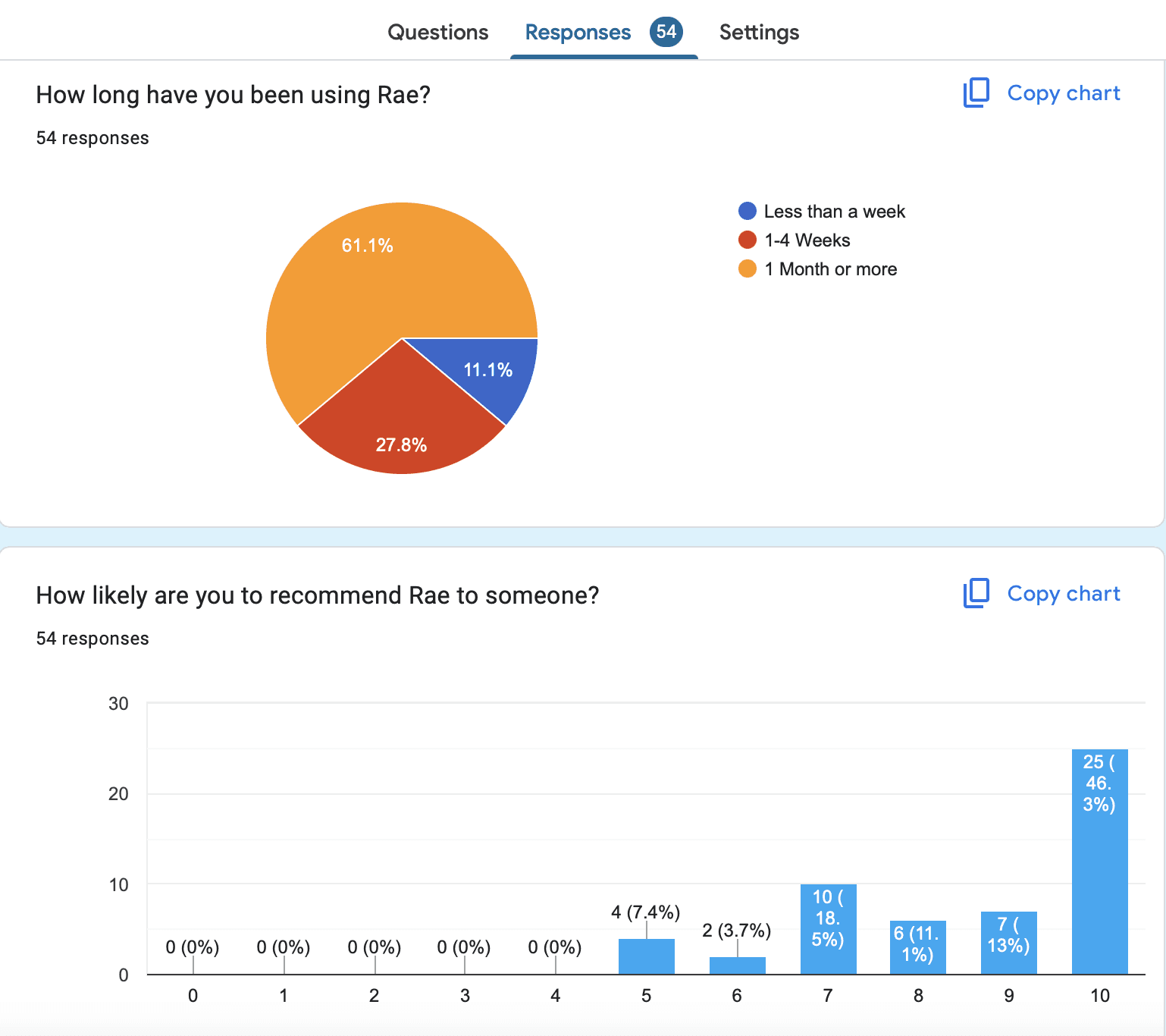 The product got users! Within 2 weeks post-launch, Rae had 240 sign ups, completed 318 sessions and received an average rating of 4.5 out of 5. This encouraged us to continue working on Rae.