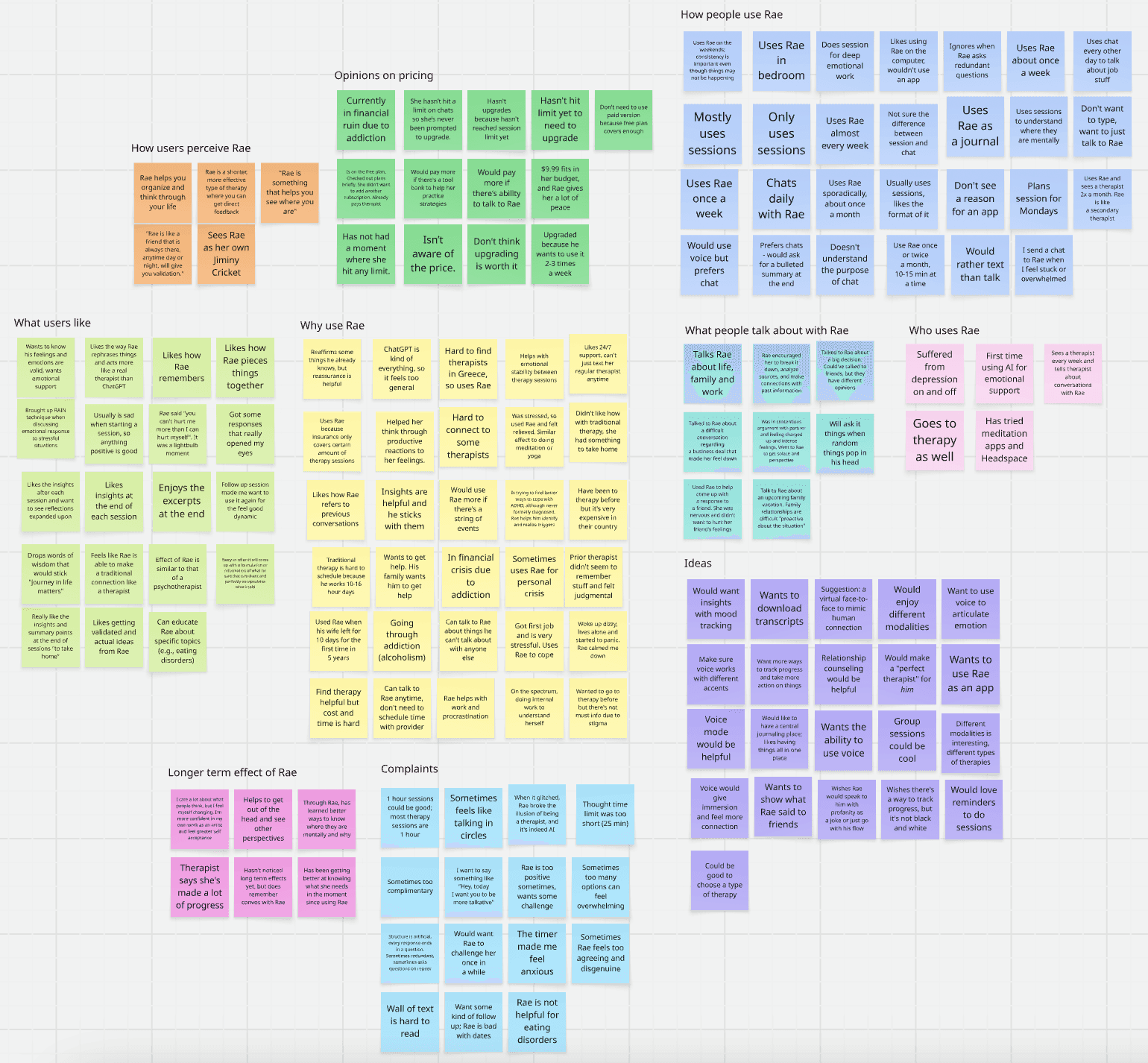 I made an affinity map based on the user interviews, syntheisizing key takeaways to incorporate into redesigns.